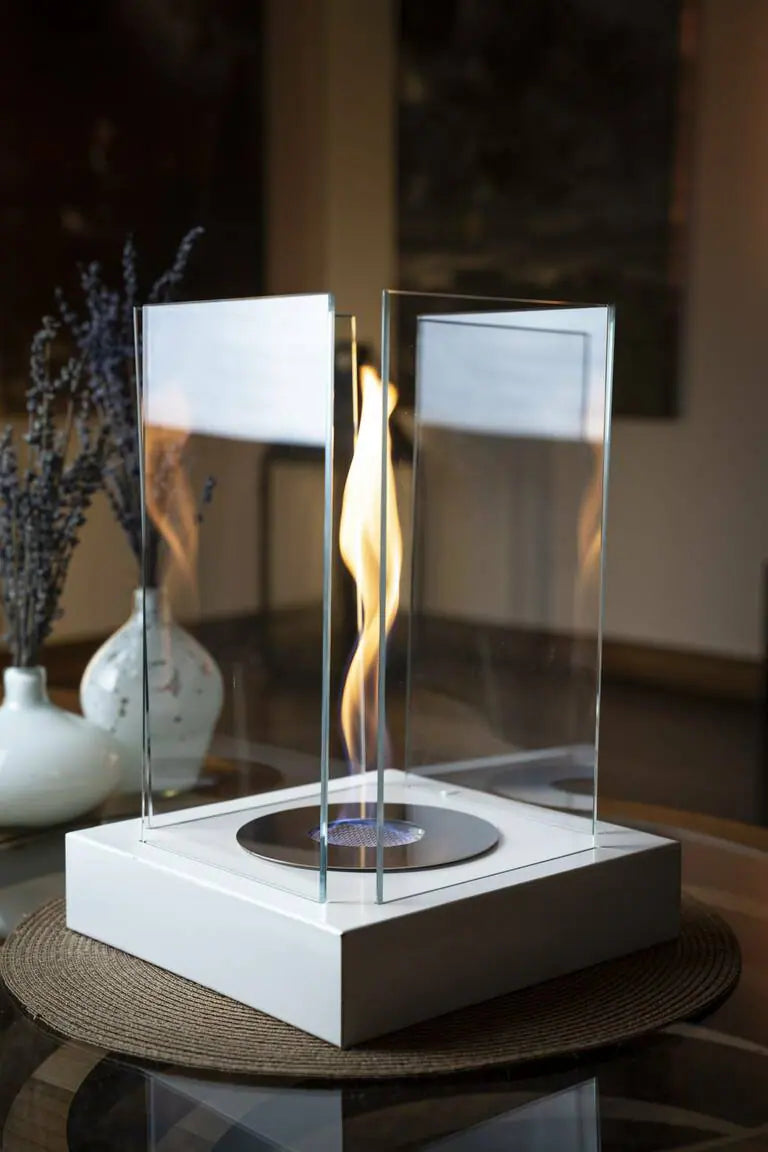 Aurafire Masa Üstü Kare Bioethanol Şömine – Beyaz (Dekoratif & Bacasız)
