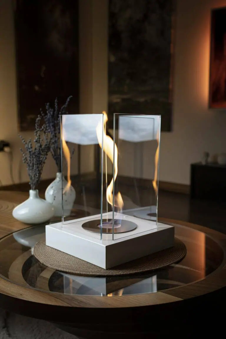 Aurafire ile ateşin büyüsünü evinizin kalbine taşıyın. Masa üstü kare tasarımı ve beyaz zarafetiyle Aurafire Bioethanol Şömine, modern dekorasyonla doğal ateşin ruhunu bir araya getiriyor. Elektrik, baca veya ekstra bağlantı gerektirmeden çalışan bu özel şömine; koku, is, kül ve duman oluşturmadan tertemiz bir alev deneyimi sunar.