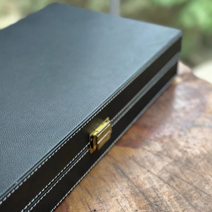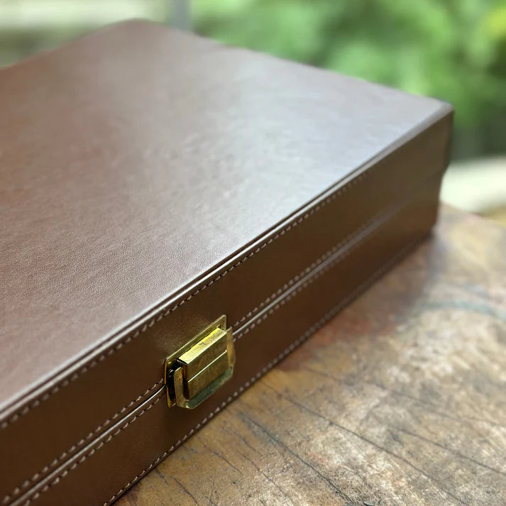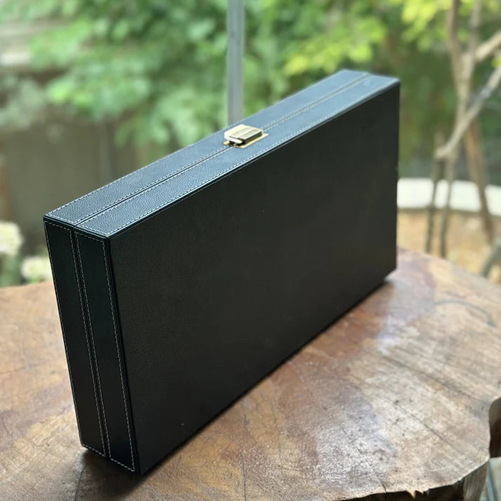 Klasik tavla keyfini lüks bir dokunuşla yeniden keşfedin. Tamamen el işçiliğiyle üretilen bu hakiki deri kaplama tavla, oyun tutkunları ve zarif detaylardan hoşlananlar için tasarlandı.
