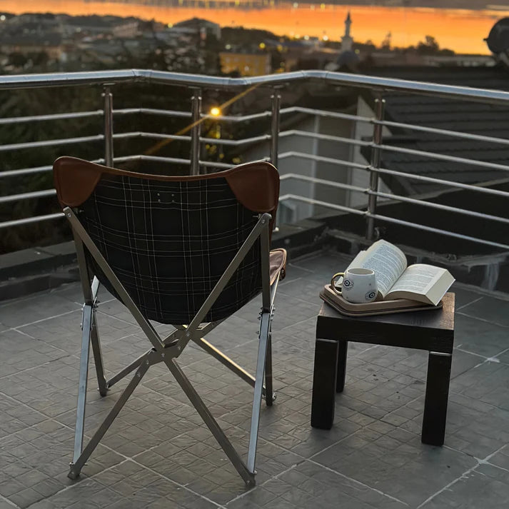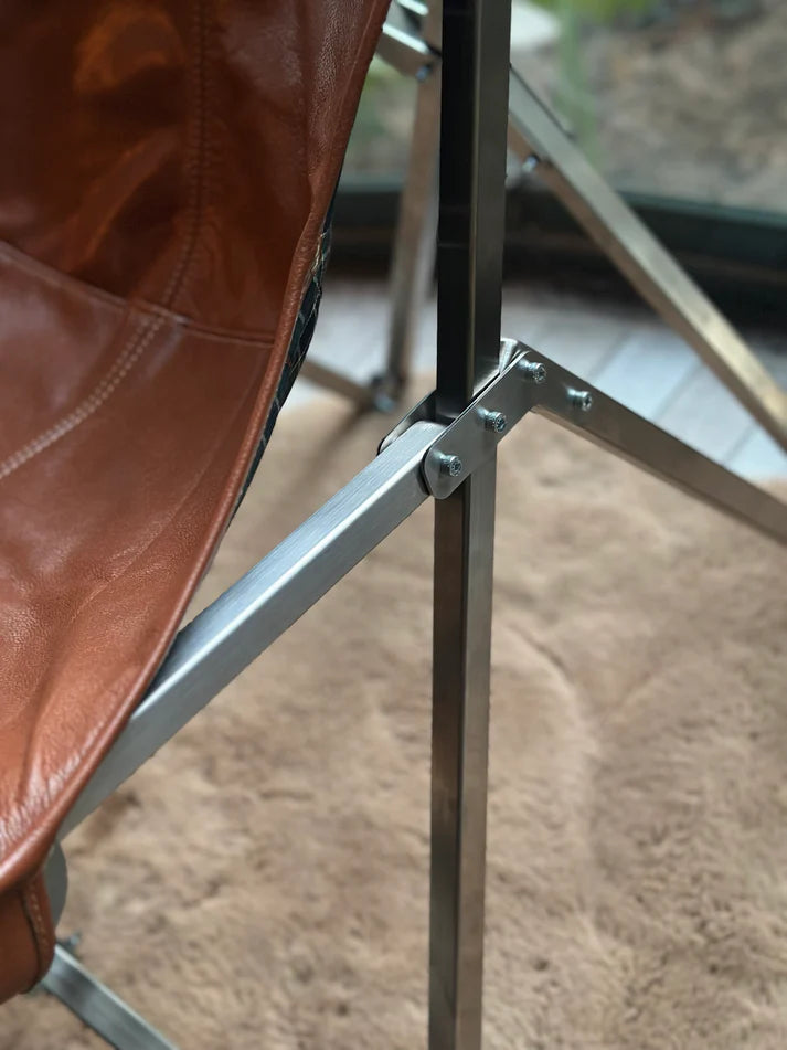 Yüksek kalite paslanmaz çelik iskelet ve hakiki deri oturum yüzeyiyle hem iç hem dış mekânlarda şıklığı ve konforu bir arada sunar.