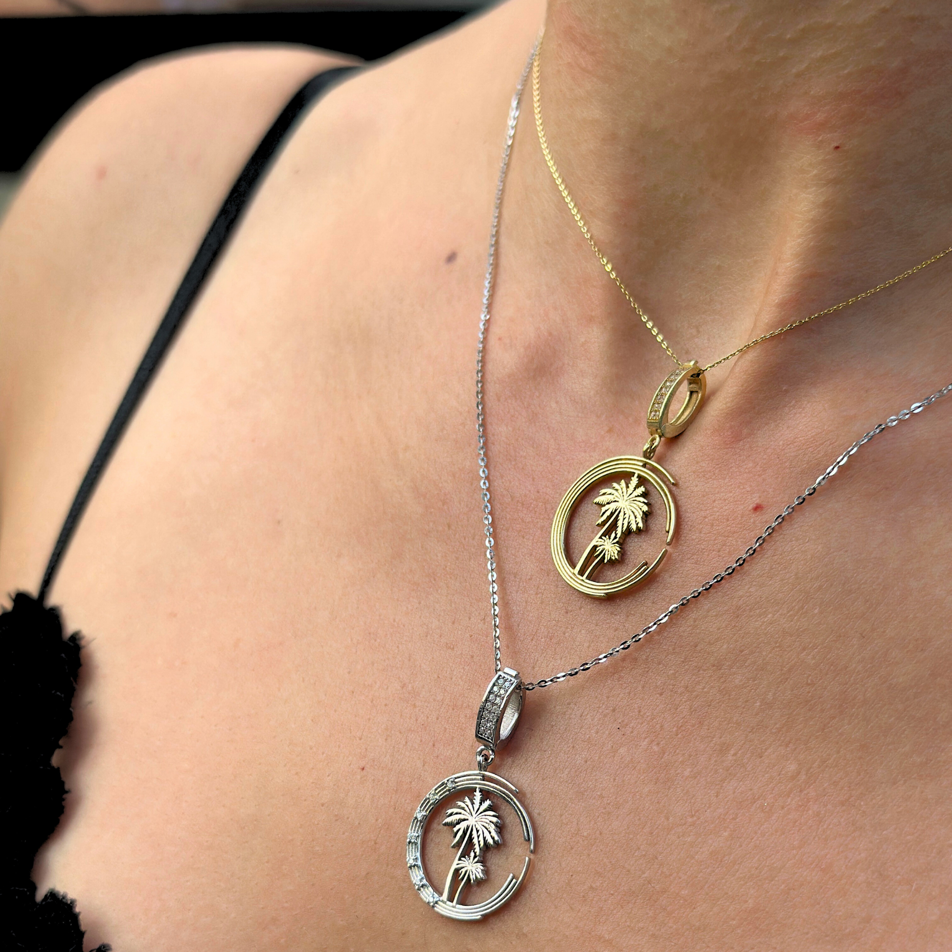 Işığın Mührü Kolye – Büyük Palmiye, Altın ve Swarovski Taşlı