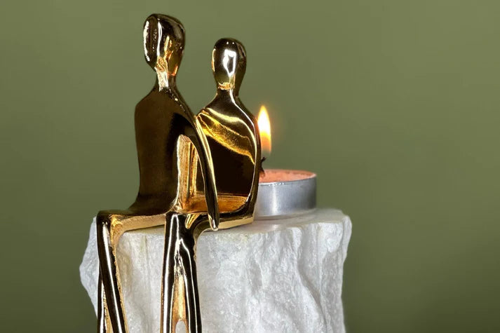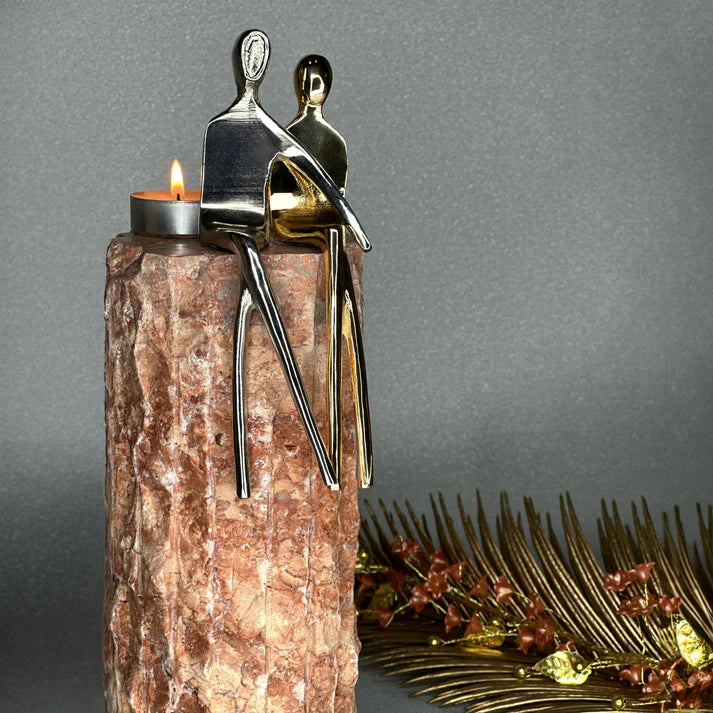 Doğal taşın asil dokusunu pirinç detayların sıcak ışıltısıyla buluşturan Merleger Büyük Boy Dekoratif Mumluk, yaşam alanlarınıza lüks bir atmosfer kazandırır. El işçiliğiyle işlenmiş doğal mermer gövde ve pirinç döküm üzeri kaplama figür tasarımıyla her biri kendine özgüdür.